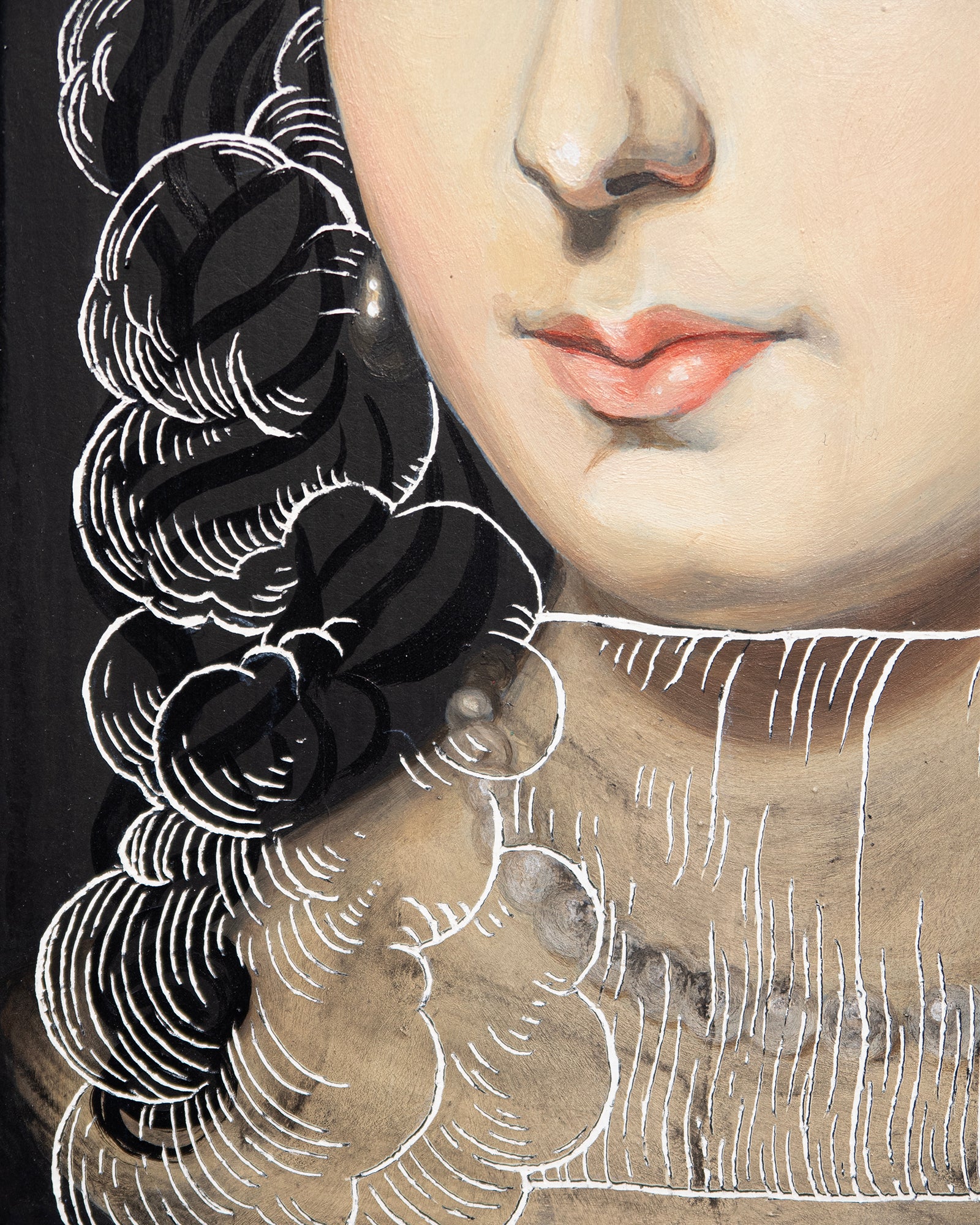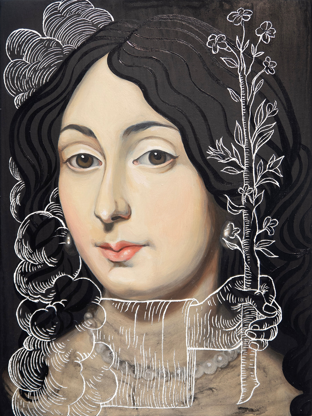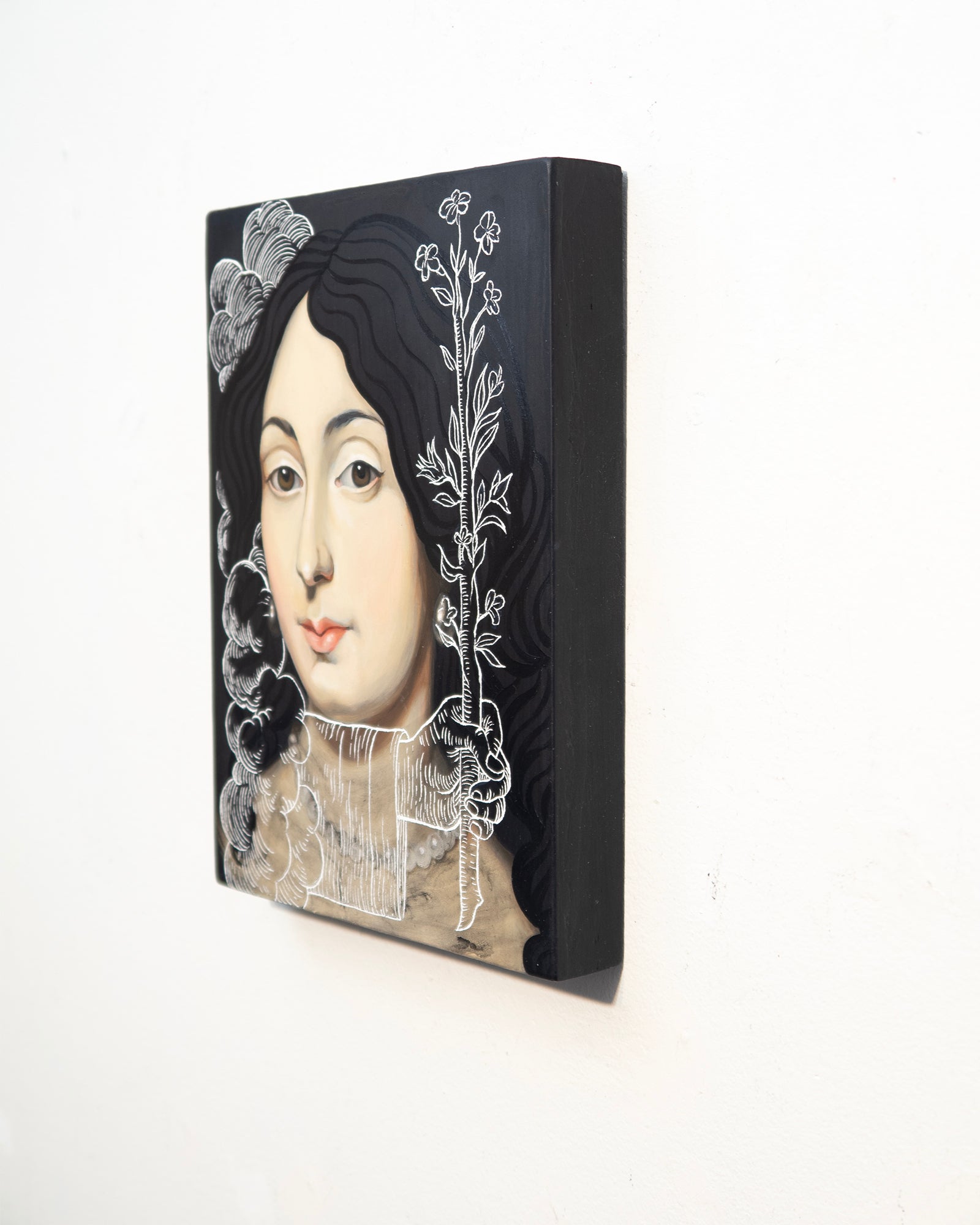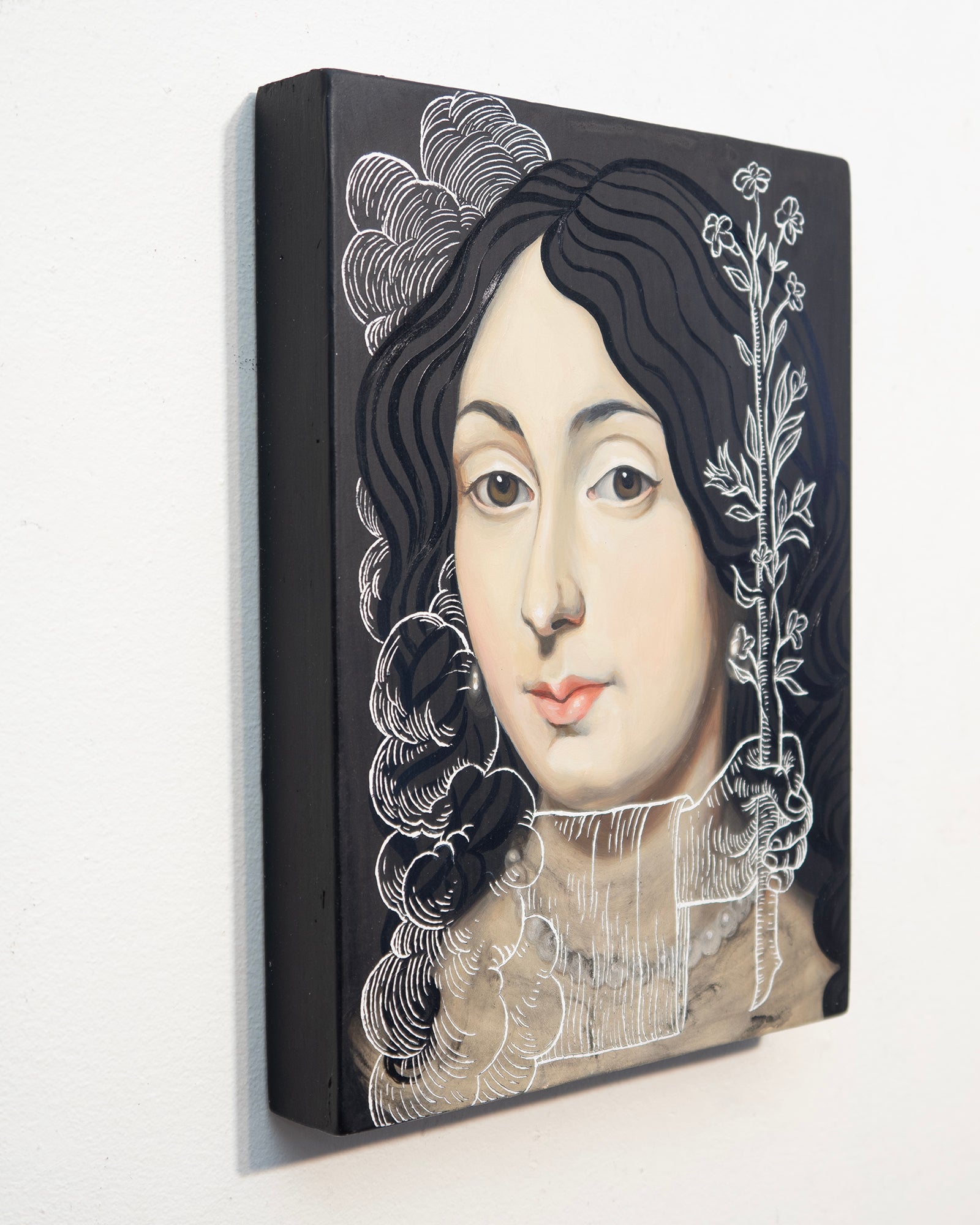 Acrylic with engraving on cradled wood panel. Ready to hang. Signed on the reverse.
