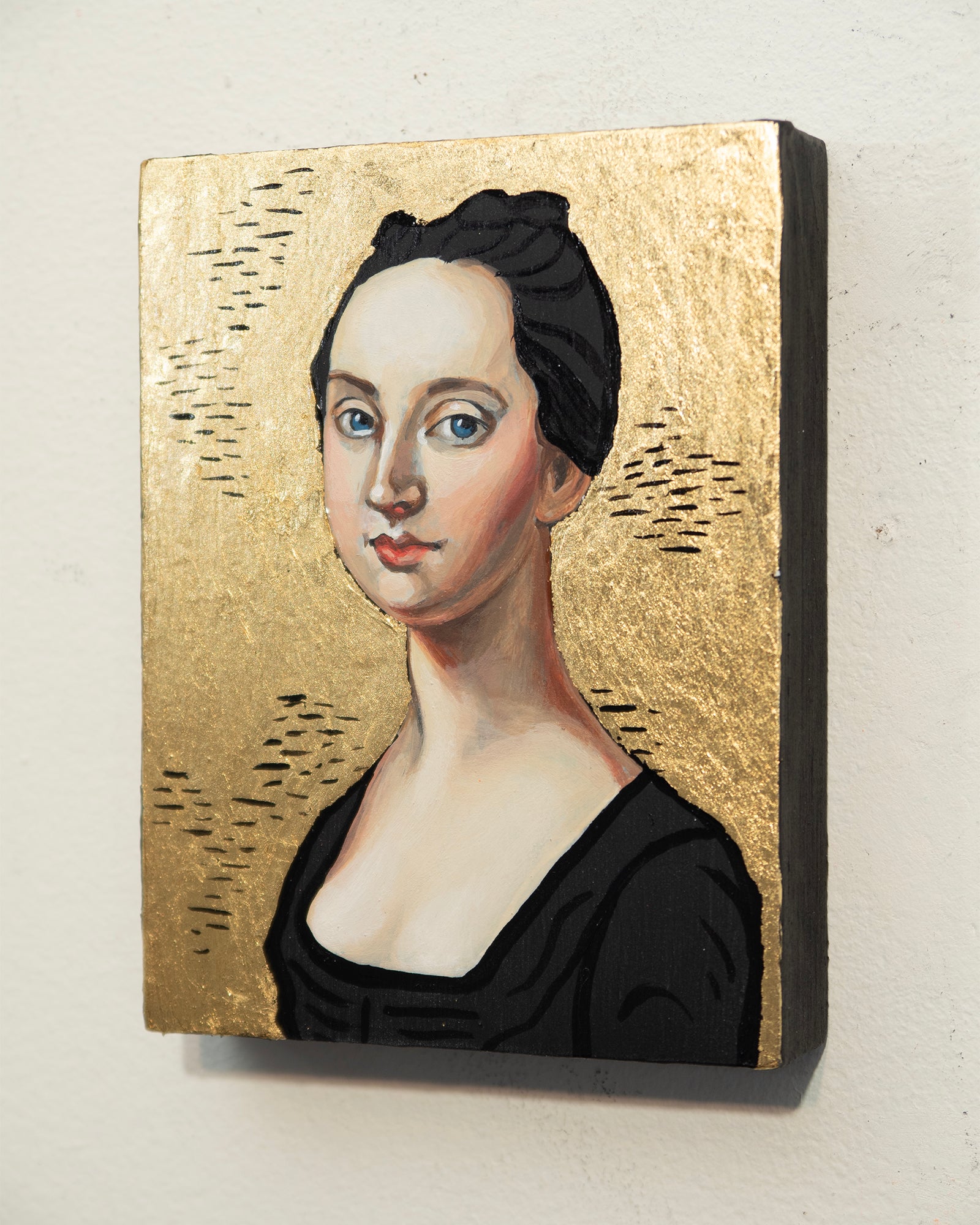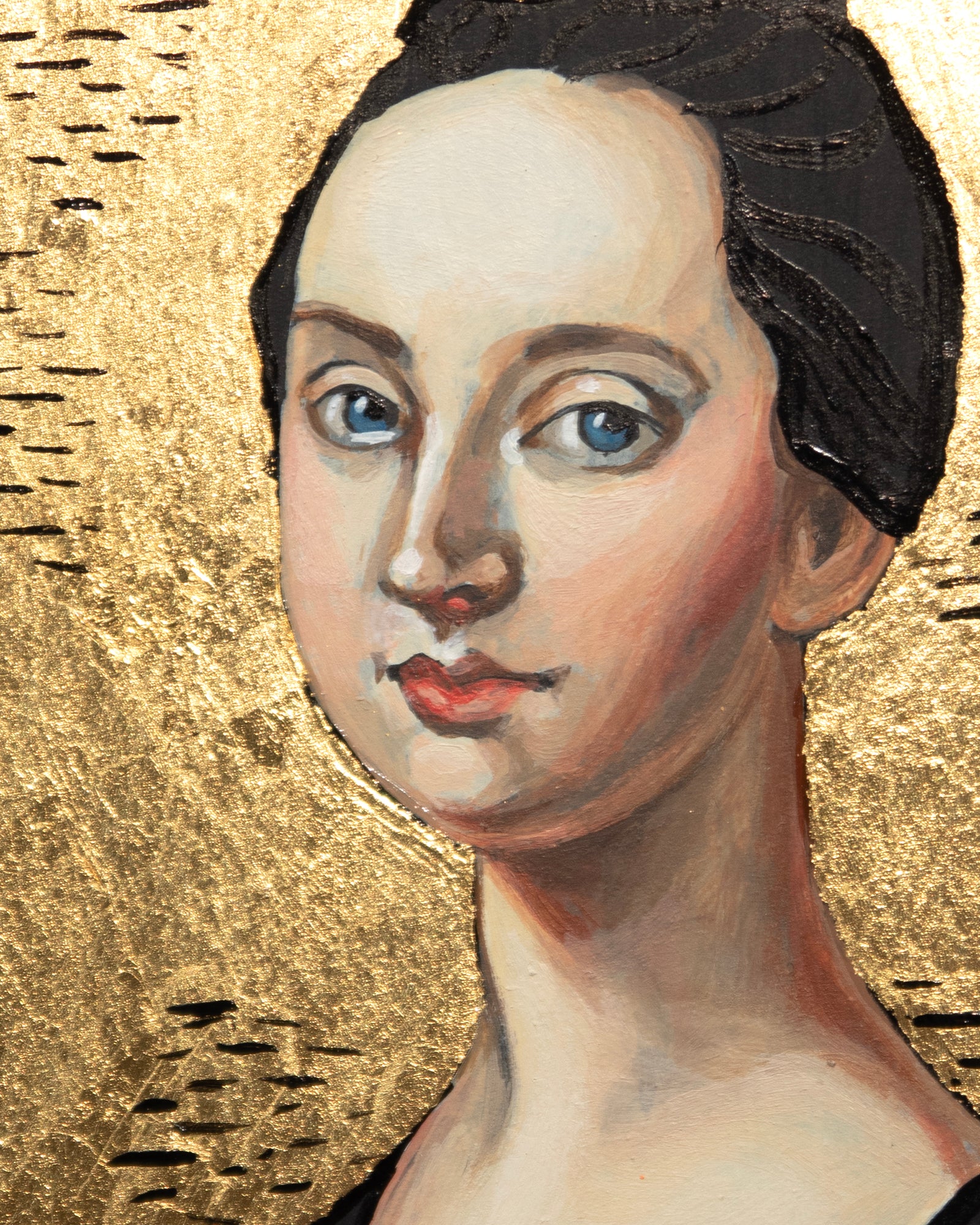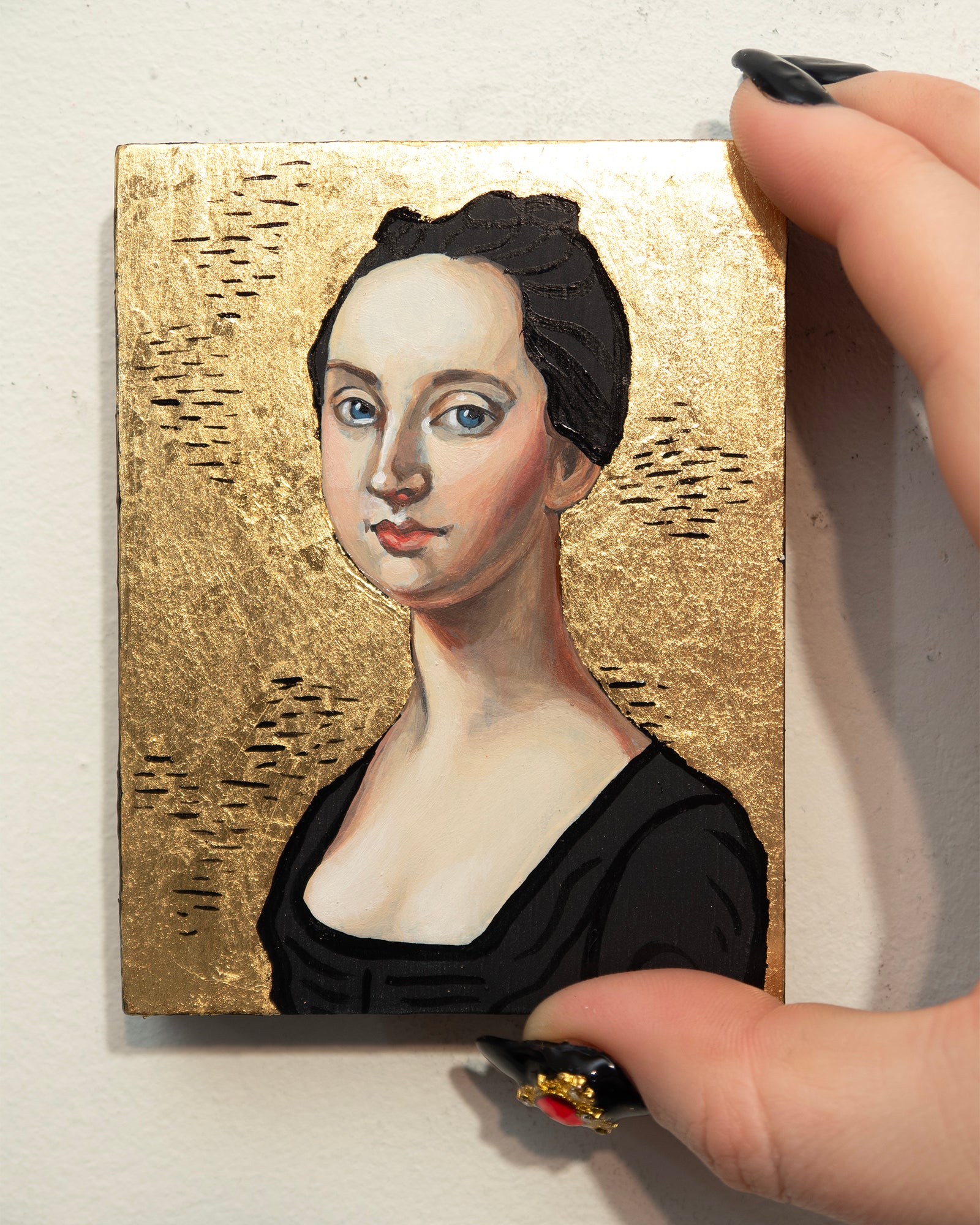 Acrylic and gold leaf on miniature cradled wood panel. Ready to hang. Signed on the reverse.