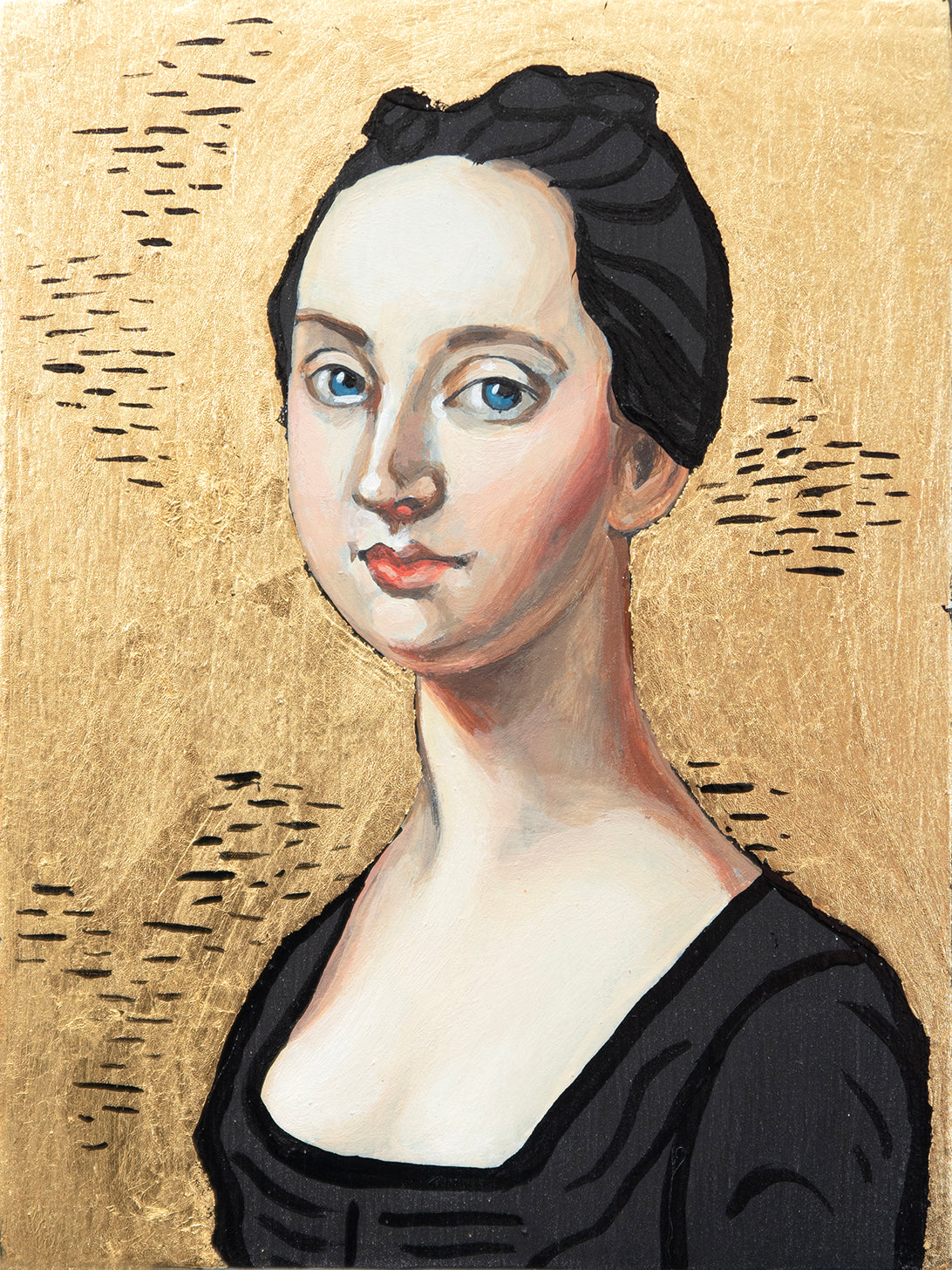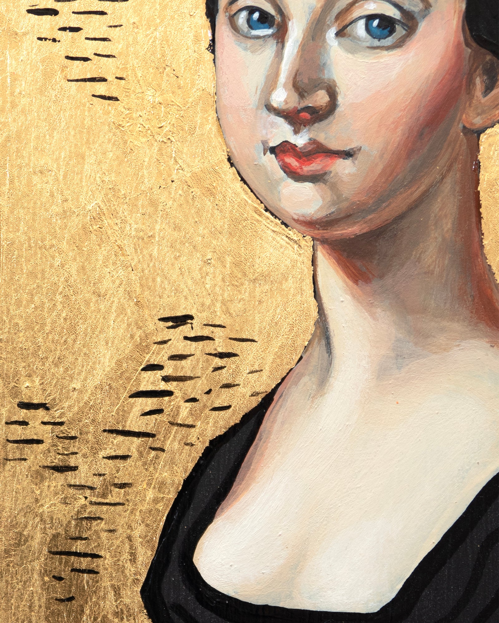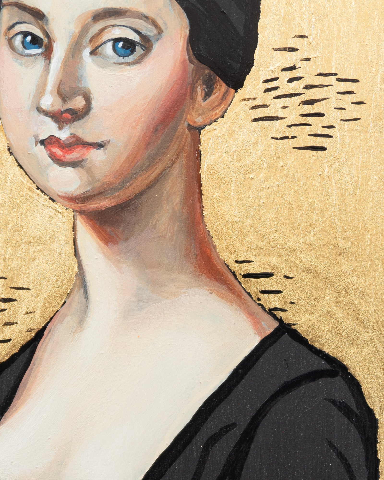 Acrylic and gold leaf on miniature cradled wood panel. Ready to hang. Signed on the reverse.