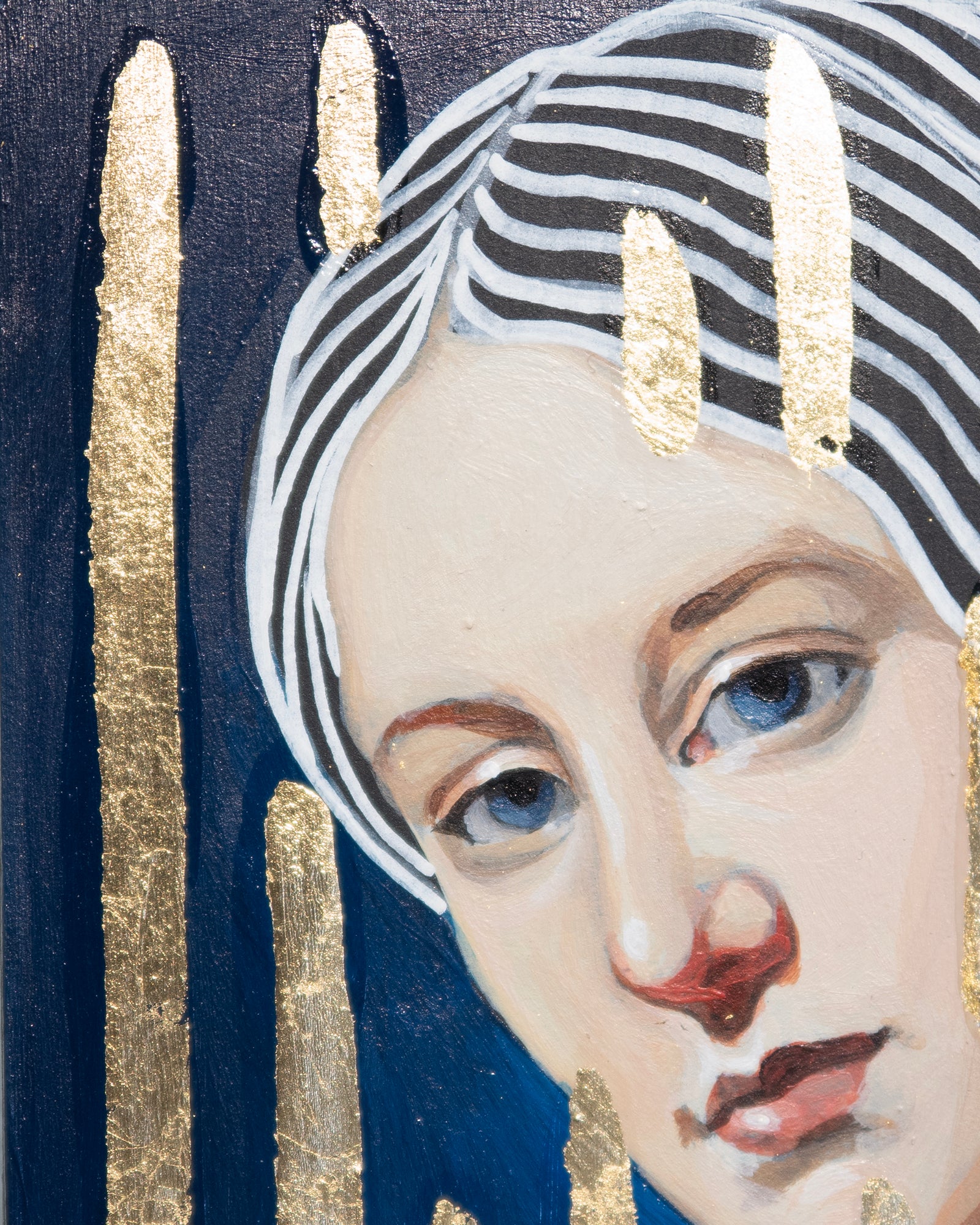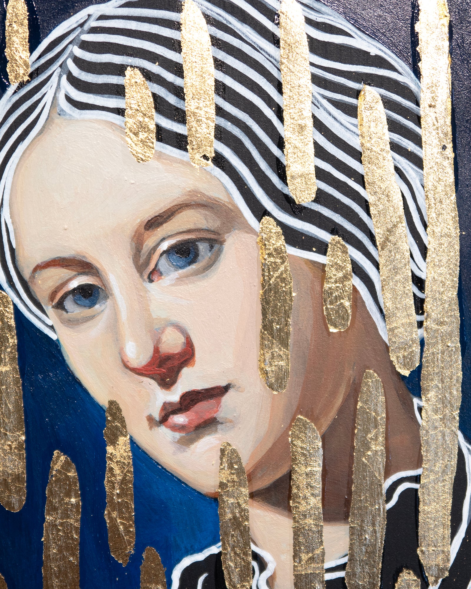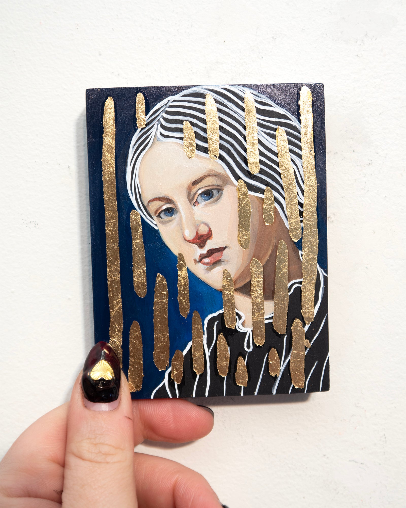 Acrylic and gold leaf on miniature cradled wood panel. Ready to hang. Signed on the reverse.