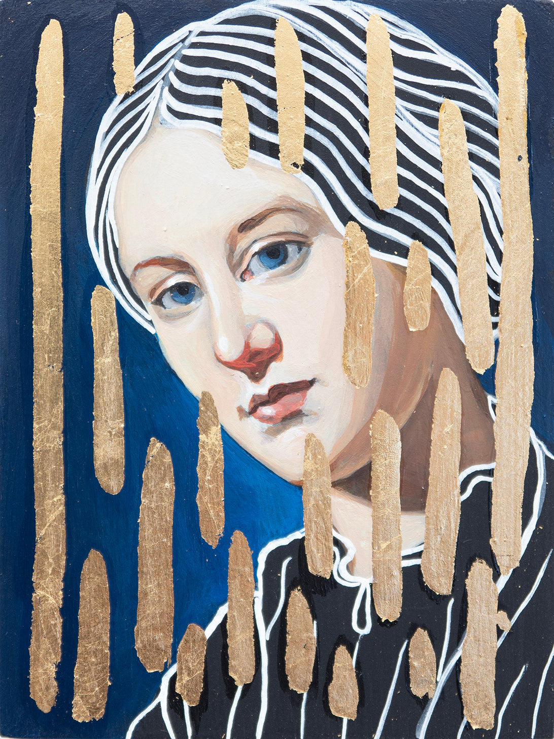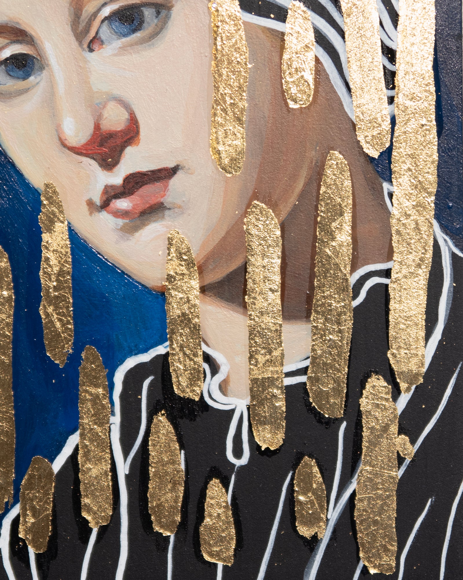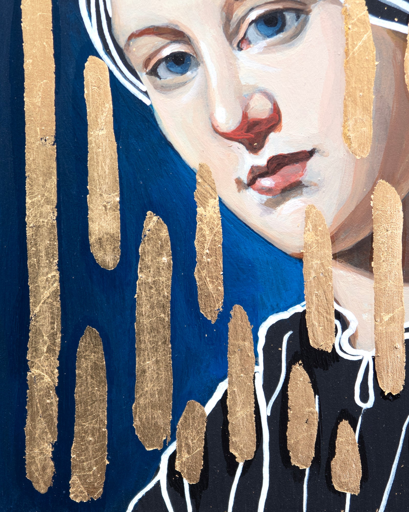 Acrylic and gold leaf on miniature cradled wood panel. Ready to hang. Signed on the reverse.