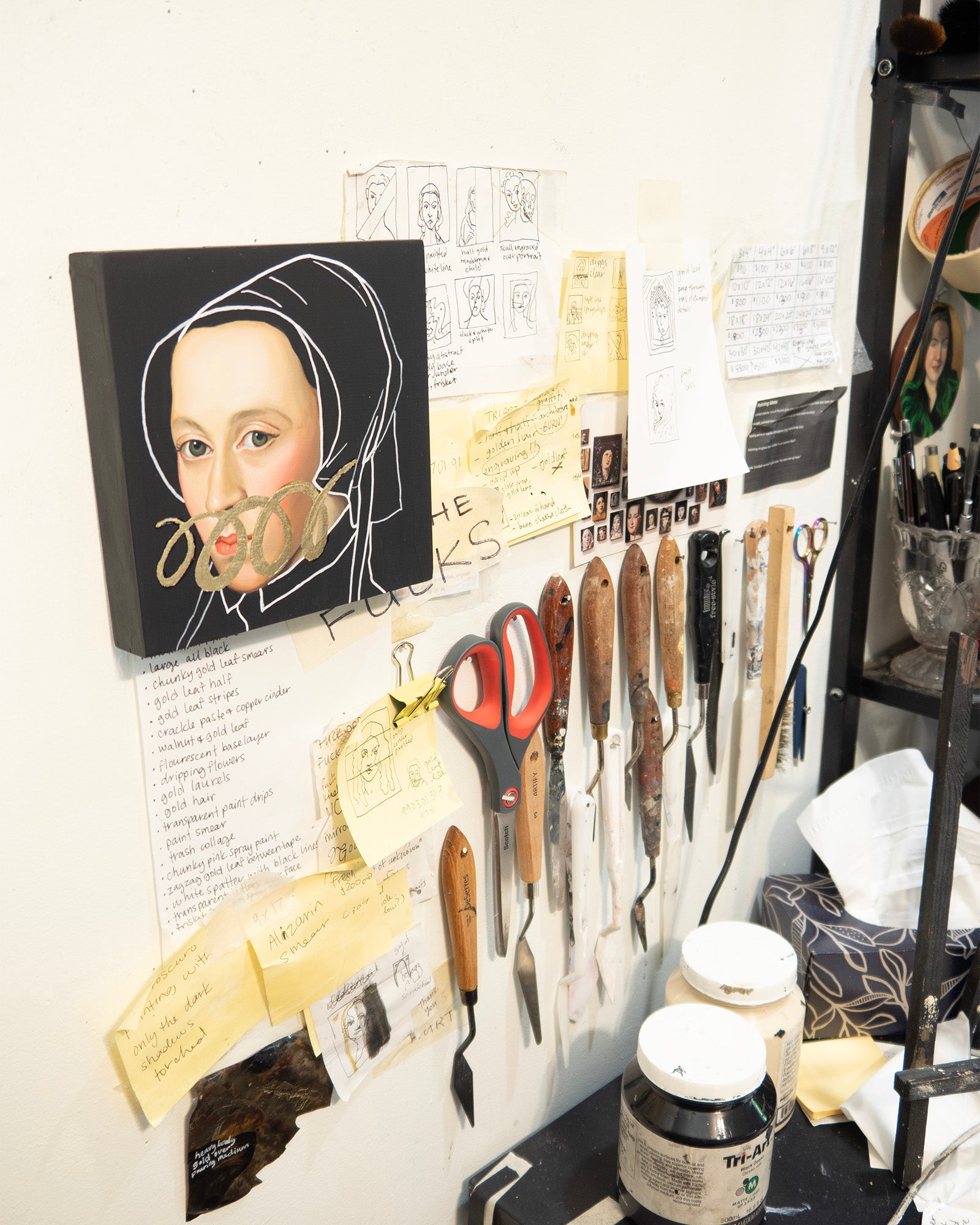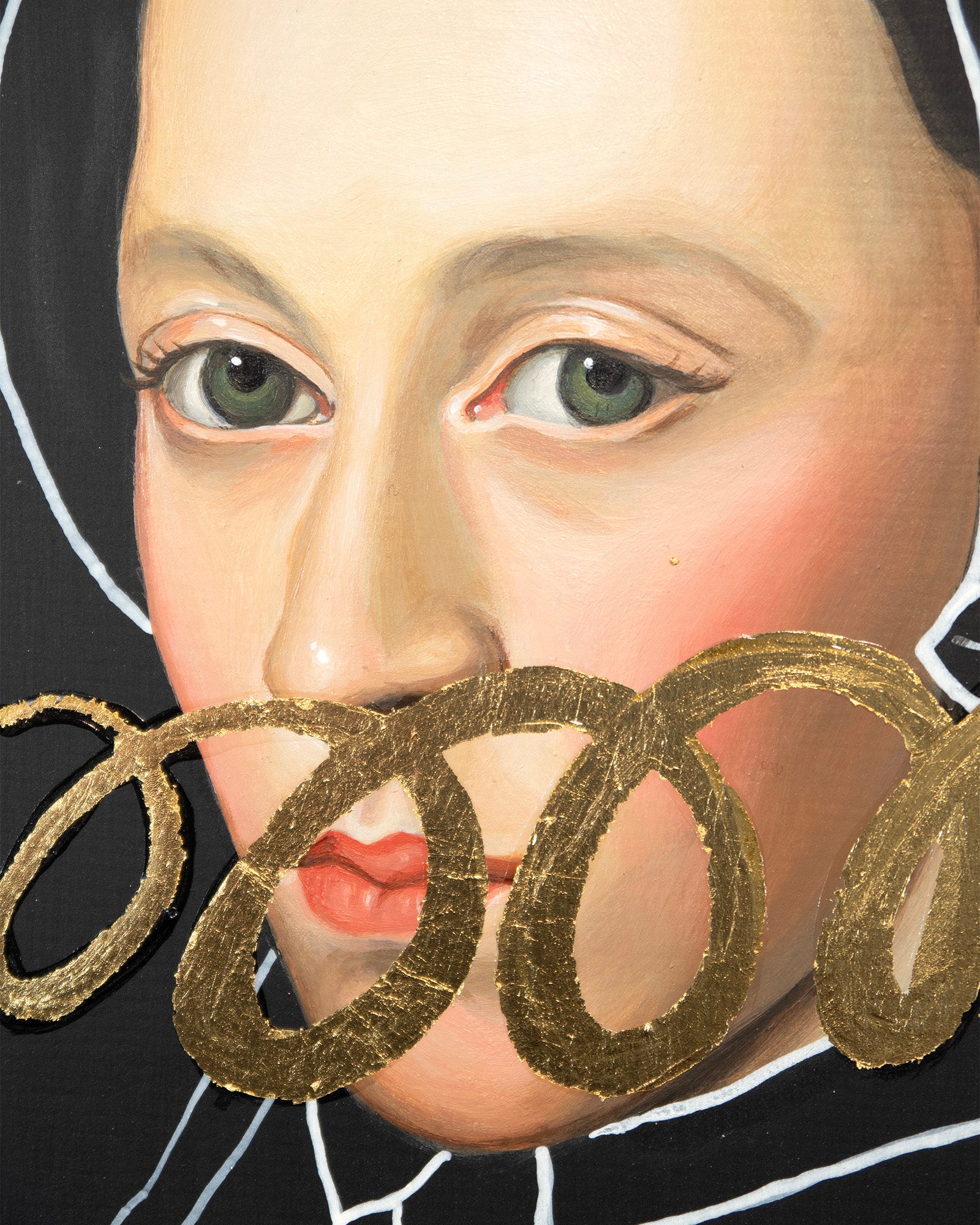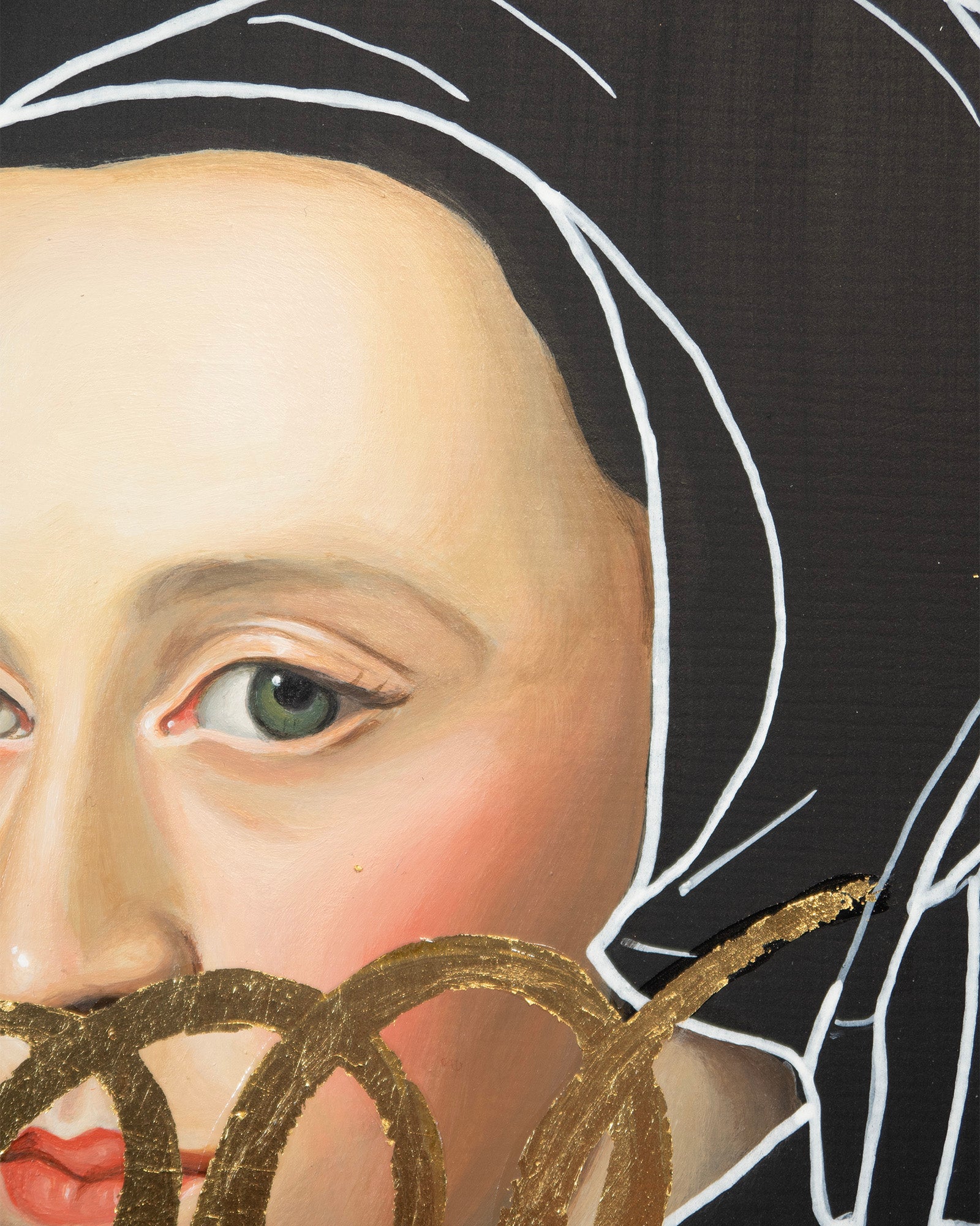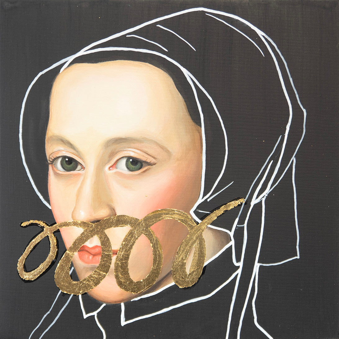 Acrylic, paint marker and gold leaf on cradled wood panel. Ready to hang. Signed on the reverse.