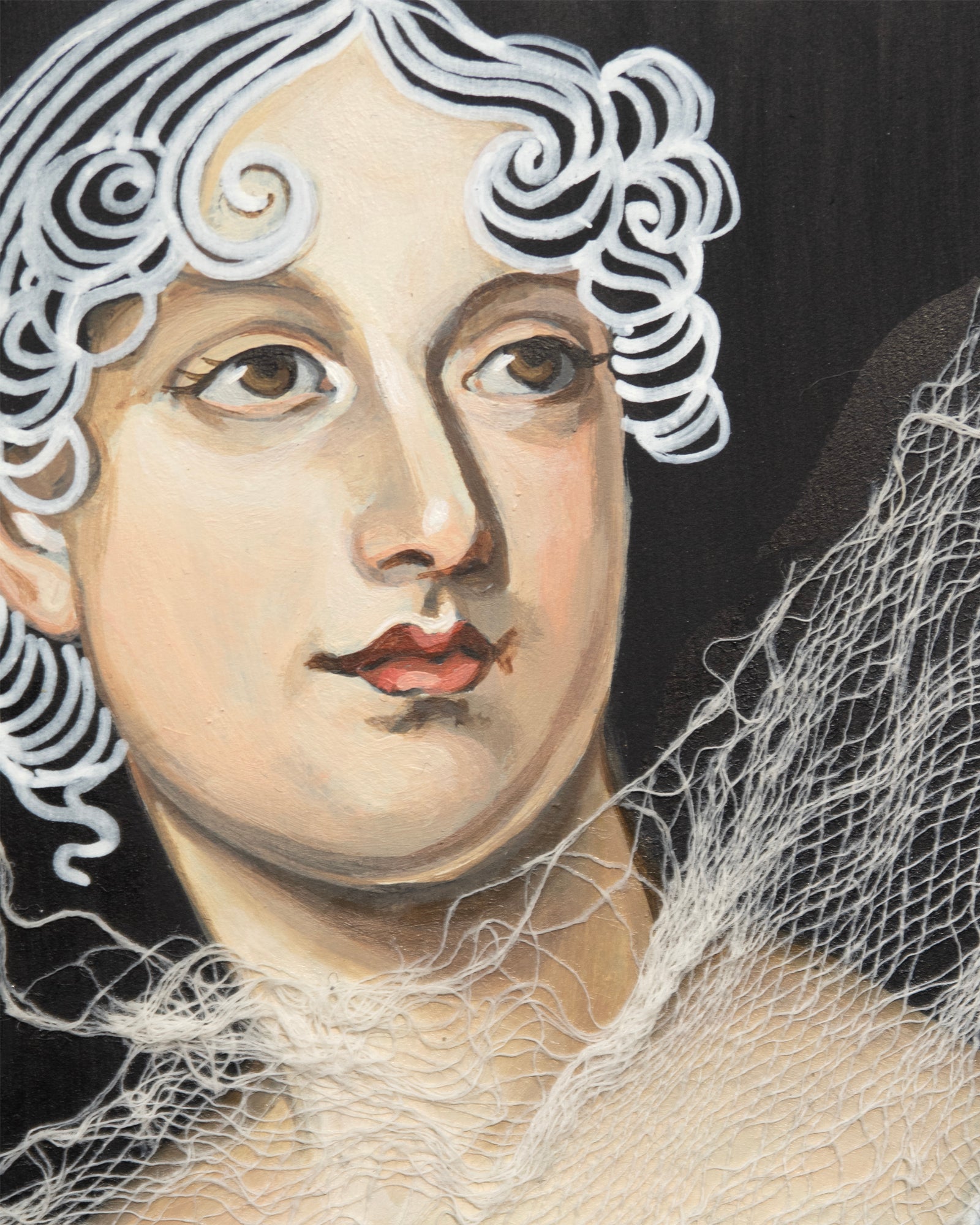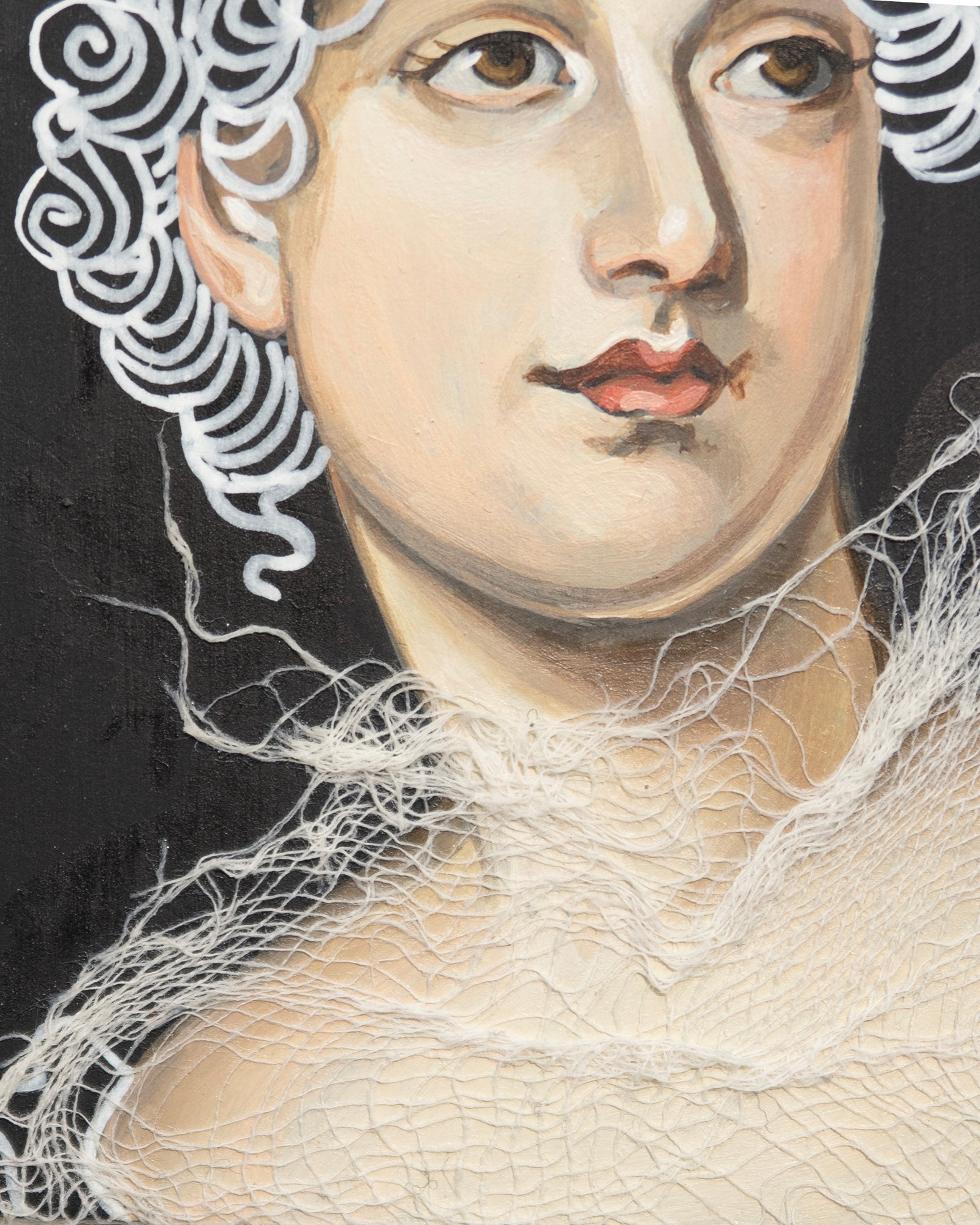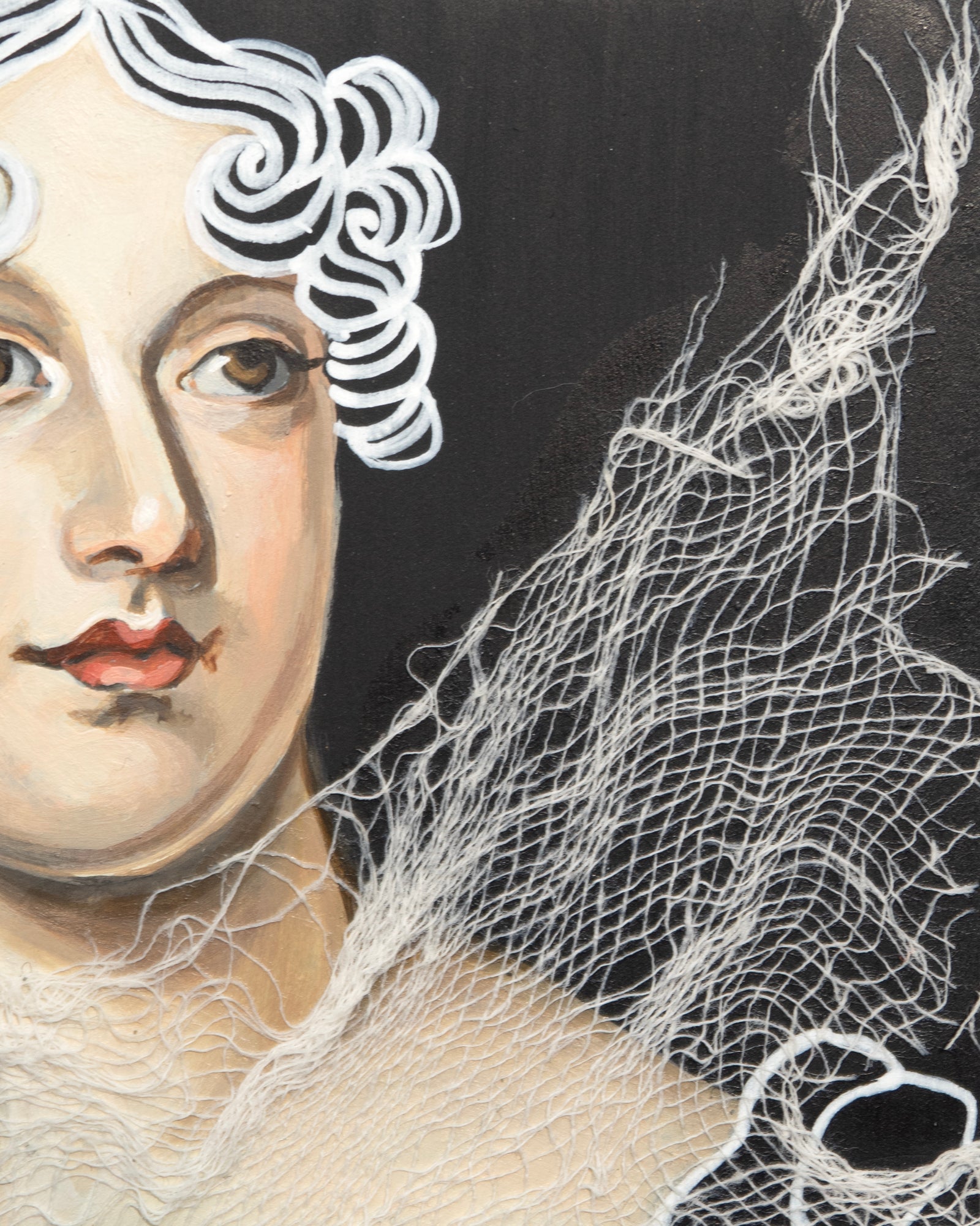 Acrylic, paint marker and cheesecloth on miniature cradled wood panel. Ready to hang. Signed on the reverse.